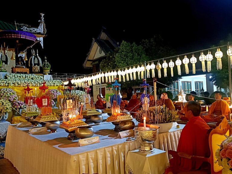 แม่สะเรียง พุทธศาสนิกชน นักท่องเที่ยว ร่วม สวดมนต์ข้ามปี สร้างบารมีข้ามชาติ ทำบุญตักบาตรหนุนดวง