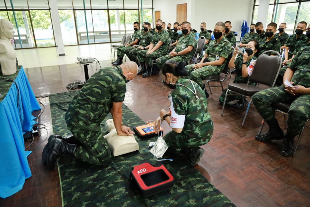 กองพลทหารราบที่ 7 จัดฝึกอบรมการใช้เครื่องกระตุกหัวใจไฟฟ้าชนิดอัตโนมัติ (AED) และทักษะการช่วยชีวิตขั้นพื้นฐาน เพื่อนำไปใช้ในการปฏิบัติงานด้านการบรรเทาสาธารณภัยและช่วยเหลือประชาชน