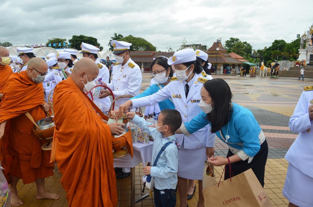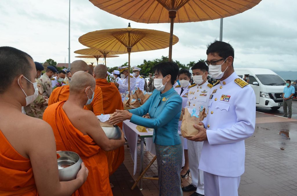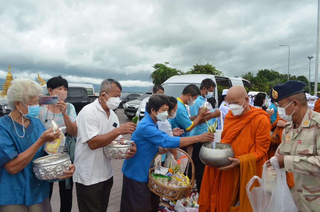 วันที่ 12 ส.ค.65 ที่ จ.พะเยา สายฝนที่โปรยปรายอย่างต่อเนื่องไม่เป็นอุปสรรคต่อความจงรักภักดีของพสกนิกรชาวพะเยา ร่วมกันทำบุญตักบาตรพระสงฆ์ ถวายเป็นพระราชกุศลแด่ “สมเด็จพระนางเจ้าสิริกิติ์ พระบรมราชินีนาถ พระบรมราชชนนีพันปีหลวง” เนื่องในวันแม่แห่งชาติ 12 สิงหาคม ณ ลานอนุสาวรีย์พ่อขุนงำเมือง ริมกว๊านพะเยา โดยมีนายศักดิ์ฤทธิ์ สลักคำ ผวจ.พะเยา นำหัวหน้าหน่วยงานราชการ ข้าราชการ พ่อค้า ประชาชนชาวพะเยา พร้อมใจใส่เสื้อสีฟ้ามาร่วมกิจกรรมท่ามกลางสายฝนที่โปรายอย่างชุ่มฉ่ำ