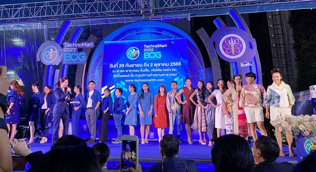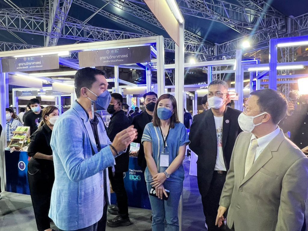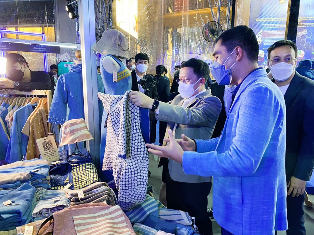 ผศ.ไพโรจน์ วรพจน์พรชัย ผู้จัดการคลินิคเทคโนโลยี มหาวิทยาลัยเทคโนโลยีราชมงคลล้านนา พร้อมคณะทำงาน ร่วมจัดแสดงผลงานนวัตกรรมผ้าทอย้อมสีธรรมชาติห้อม หนึ่งในผลงานวิจัยด้านเทคโนโลยี และนวัตกรรมที่โดดเด่นมหาวิทยาลัยเทคโนโลยีราชมงคลล้านนา ในงานเทคโนโลยีและนวัตกรรมของไทย ประจําปี 2565 : TechnoMart 2022 “พลิกโฉมประเทศไทย สู่เศรษฐกิจสร้างคุณค่า สังคมเดินหน้าอย่างยั่งยืน” ณ Parc Paragon ชั้น M ศูนย์การค้าสยามพารากอน กรุงเทพฯ ระหว่างวันที่ 29 กันยายน – 2 ตุลาคม พ.ศ. 2565 ร่วมกับหน่วยงานภาคีเครือข่าย ภายใต้การกำกับของกระทรวงการอุดมศึกษา วิทยาศาสตร์ วิจัยและนวัตกรรม (อว.) มากกว่า 80 หน่วยงาน เพื่อแสดงศักยภาพการผลิตและพัฒนาผลงานวิจัยพร้อมใช้ที่ตอบโจทย์ความต้องการของตลาด รวมถึงส่งเสริมให้เกิดการเจรจาและซื้อขายในเชิงธุรกิจมีการแลกเปลี่ยนเรียนรู้ระหว่างผู้ประกอบการ นักวิชาการ นักวิจัย และผู้ที่สนใจ เป็นการสร้างแรงบันดาลใจให้เกิดการพัฒนาผลงานวิจัยด้านเทคโนโลยี และนวัตกรรมที่ตอบโจทย์ความต้องการของตลาด ช่วยขับเคลื่อนเศรษฐกิจของประเทศอย่างยั่งยืน โดยมี ดร.ดนุช ตันเทอดทิตย์ เลขานุการรัฐมนตรีว่าการกระทรวงการอุดมศึกษา วิทยาศาสตร์ วิจัยและนวัตกรรม (อว.) พร้อมด้วย นางสาวสุณีย์ เลิศเพียรธรรม ผู้ตรวจราชการ อว., นายเอกพงศ์ มุสิกะเจริญ รองผู้อำนวยการสำนักงานบริหารเทคโนโลยีสารสนเทศเพื่อการพัฒนาการศึกษา (UniNet) และคณะผู้บริหารกระทรวงการอุดมศึกษา วิทยาศาสตร์ วิจัยและนวัตกรรม (อว.) เป็นประธานพิธีเปิดงาน ในวันที่ 29 กันยายน ที่ผ่านมา