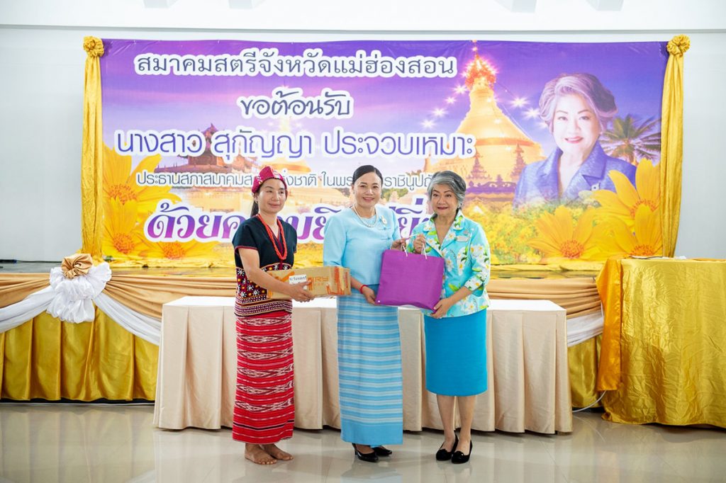 วันที่ 29 มกราคม 2567 ผู้สื่อข่าวรายงานจากจังหวัดแม่ฮ่องสอน ว่า น.ส.สุกัญญา ประจวบเหมาะ ประธานสภาสมาคมสตรีแห่งชาติในพระบรมราชินูปถัมภ์ และคณะกรรมการอำนวยการ ได้เดินทางลงพื้นที่จังหวัดแม่ฮ่องสอนมอบผ้าห่มกันหนาว, หน้ากากอนามัย, ชุดวอร์ม, ตุ๊กตา, หมวกกันหนาวให้แก่พี่น้อง กลุ่มสตรี 13 ชาติพันธุ์ ในจังหวัดแม่ฮ่องสอน