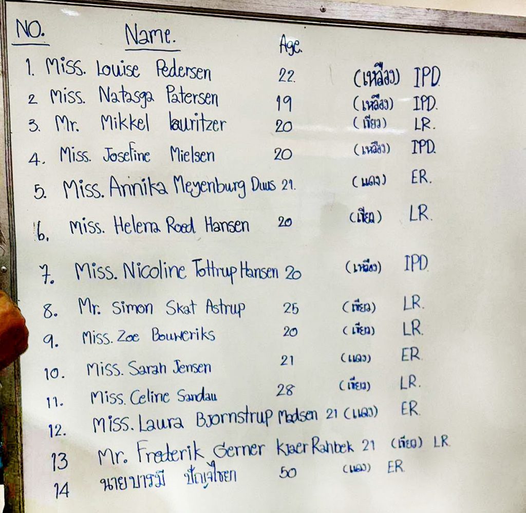 1. Miss LOUIS BLICHER WEIENDORPH PEDERSEN อายุ 23 ปี สัญชาติเดนมาร์ก เลขหนังสือเดินทาง 213663794
