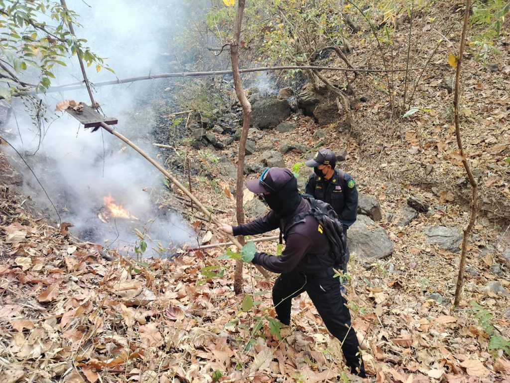 ทางด้านสำนักจัดการทรัพยากรป่าไม้ สาขาที่ 1 แม่ฮ่องสอน รายงานผลการปฏิบัติงานของหน่วยป้องกันและพัฒนาป่าไม้เมืองแม่ฮ่องสอน, หน่วยป้องกันรักษาป่าที่ มส.2 (เมืองแม่ฮ่องสอน), หน่วยป้องกันรักษาป่าที่ มส.8 (ม่อนตะแลง) ร่วมกับชุดปฏิบัติการพิเศษเหยี่ยวไฟกรมป่าไม้(ชุดสนธิกำลัง) ชุดเหยี่ยวไฟนครศรีธรรมราช , ชุดปฏิบัติการพิเศษเหยี่ยวไฟกรมป่าไม้(ชุดสนธิกำลัง) ชุดเหยี่ยวไฟเพชรบุรี ได้รับแจ้งจุดความร้อน (Hotspots) ตรวจพบโดยดาวเทียม suomi NPP ระบบ viirs ประจำวันที่ 19 มีนาคม 2567 รอบเวลา 02.00 น. จำนวน 32 จุด สามารถดำเนินการได้ 2 จุด เท่านั้น ที่เหลือไฟป่าเกิดในพื้นที่เทือกเขาสูงชัน ไม่สามารถดำเนินการดับไฟป่าได้แต่อย่างใด ได้แต่เพียงเฝ้าระวังไม่ให้ไฟป่าลุกลามเข้าสู่บ้านเรือนประชาชนเท่านั้น