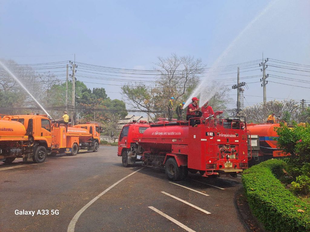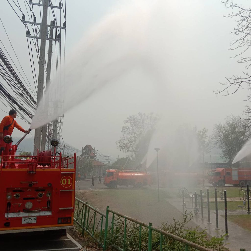 หลายหน่วยงาน ปกครอง อบจ.เทศบาล ท้องถิ่น ระดมเจ้าหน้าที่และรถบรรทุกน้ำของแต่ละหน่วยงานพ่นฉีดน้ำ เร่งสร้างความชื้น ลดหมอกควัน PM 2.5 ในพื้นที่ โรงเรียนเทศบาลเมืองแม่ฮ่องสอน จำนวน 32,000 ลิตร ในพื้นที่บริเวณสวนสาธารณะหนองจองคำ จำนวน 36,700 ลิตร ส่วนอำเภออื่น ๆ เช่น อ.ปาย อ.แม่สะเรียง อ.ขุนยวม ยังระดมรถบรรทุกน้ำฉีดพ่นน้ำเช่นกัน