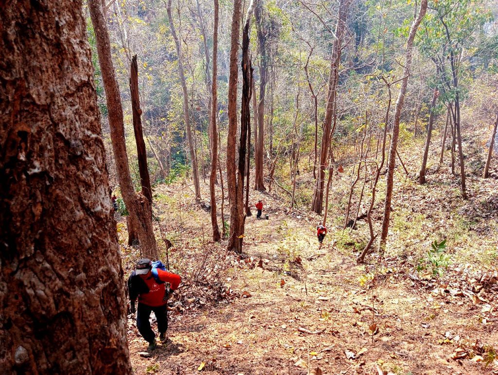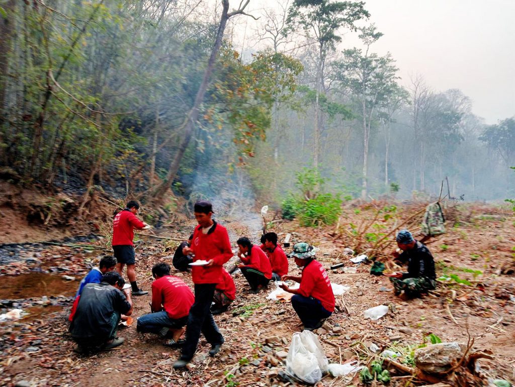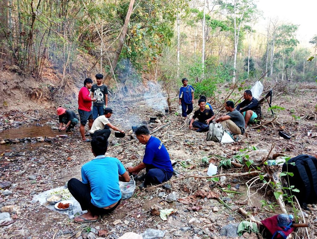 สะท้อนชีวิต “คนดับไฟ” นอนกลางดินกินกลางป่า 4 คืน 5 วัน จับตาไฟป่ากลุ่มใหญ่บ้านแม่ก๋อน เร่งทำแนวเฝ้าระวังไฟป่าลุกลามใจกลางป่าสาละวิน