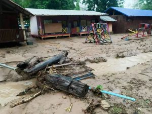 Heavy rain, broken road, walking back to school School teacher on a high mountain, Mae Sariang, Mae Hong Son, Thailand 9