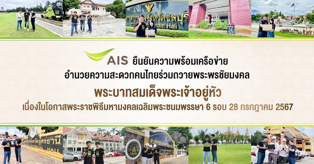 AIS ยืนยันความพร้อมเครือข่าย อำนวยความสะดวกคนไทยร่วมถวายพระพรชัยมงคล พระบาทสมเด็จพระเจ้าอยู่หัว เนื่องในโอกาสพระราชพิธีมหามงคลเฉลิมพระชนมพรรษา 6 รอบ 28 กรกฎาคม 2567