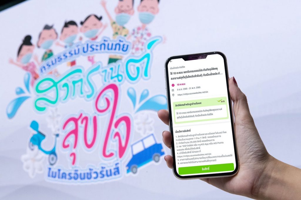 มากไปกว่านั้น AIS ยังมอบของขวัญปีใหม่ไทย แทนความห่วงใยให้ลูกค้าทั้ง AIS และ AIS Fibre ด้วยความร่วมมือกับเมืองไทยประกันชีวิต มอบประกันอุบัติเหตุให้กับลูกค้าฟรี ด้วยวงเงินคุ้มครองการเสียชีวิตจากอุบัติเหตุสูงสุด 100,000 บาท โดยลูกค้าสามารถใช้ AIS Points 10 คะแนนเพื่อแลกรับสิทธิ์ ผ่านทางแอป myAIS หรือกด *550*3406# โทรออก ได้ตั้งแต่วันนี้ถึง 31 พฤษภาคม 2565 รายละเอียดเพิ่มเติม https://privilege.ais.co.th/points/