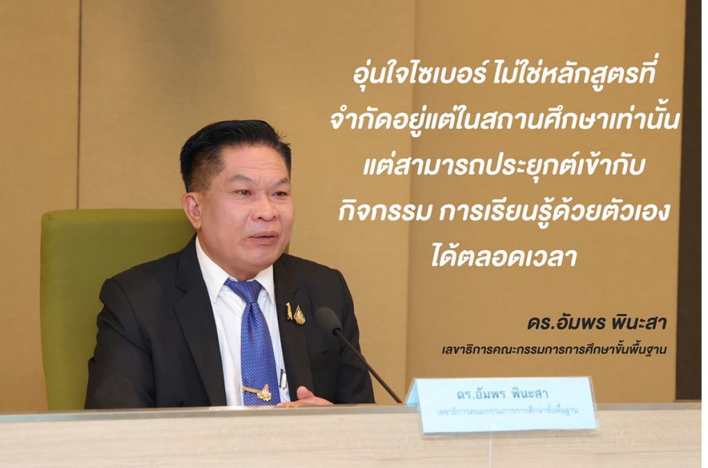 ดร.อัมพร พินะสา เลขาธิการคณะกรรมการการศึกษาขั้นพื้นฐาน กล่าวว่า “การก้าวให้ทันการเปลี่ยนแปลงของโลกดิจิทัลและเทคโนโลยี ถือเป็นภารกิจของกระทรวงศึกษาธิการ ที่มีความมุ่งมั่นตั้งใจในการขยายโอกาสการเข้าถึงบริการทางการศึกษาอย่างสร้างสรรค์และปลอดภัย ซึ่งหลักสูตรอุ่นใจไซเบอร์สามารถตอบโจทย์เป้าหมายดังกล่าวได้เป็นอย่างดี โดยเฉพาะในครั้งนี้ที่เราร่วมกันขับเคลื่อนการพัฒนาสื่อการเรียนรู้ดิจิทัลหลักสูตรอุ่นใจไซเบอร์ไปยังสถาบันการศึกษาในสังกัด สพฐ. ทั่วประเทศ ที่จะทำให้นักเรียนและเยาวชนของเรามีความรู้เท่าทันภัยไซเบอร์ที่แฝงมากับการใช้งานอินเทอร์เน็ต และสามารถใช้ประโยชน์จากเทคโนโลยีให้เกิดขึ้นสูงสุด และจะเป็นการยกระดับภาคการศึกษาไทยให้ทั้งครู บุคลากรทางการศึกษา และนักเรียน