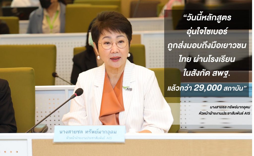 AIS เดินหน้าส่ง “หลักสูตรอุ่นใจไซเบอร์” เข้าสถานศึกษา พร้อมส่งต่อสู่นักเรียนไทย เริ่มแล้วกว่า 29,000 โรงเรียนในเครือ สพฐ. ทั่วประเทศ ยกระดับทักษะสร้างพลเมืองดิจิทัล ให้รู้ทันภัยไซเบอร์