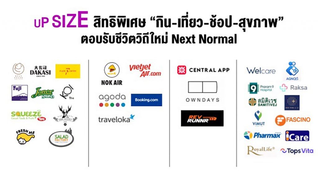 💚 กิน จับมือกับแบรนด์เครื่องดื่มชั้นนำกว่า 7 แบรนด์ อาทิ Flash Coffee, KOI The’, DAKASI, Squeeze by Tipco, The Alley, Fresh Me และ Bear House ให้ลูกค้า Upsize ได้รวมกว่า 360 สาขา ทั่วประเทศ เพิ่มเติมสิทธิพิเศษจากร้านค้าในหมวดเครื่องดื่มกว่า 10,000 ร้าน มากไปกว่านั้นยังมอบสิทธิพิเศษให้กับลูกค้า รับส่วนลดร้านอาหารเพื่อสุขภาพอย่าง ร้านอาหารญี่ปุ่นฟูจิ, ร้านโจนส์สลัด และร้านอาหารเพื่อสุขภาพชื่อดังอีกมากมาย สูงสุดถึง 20%