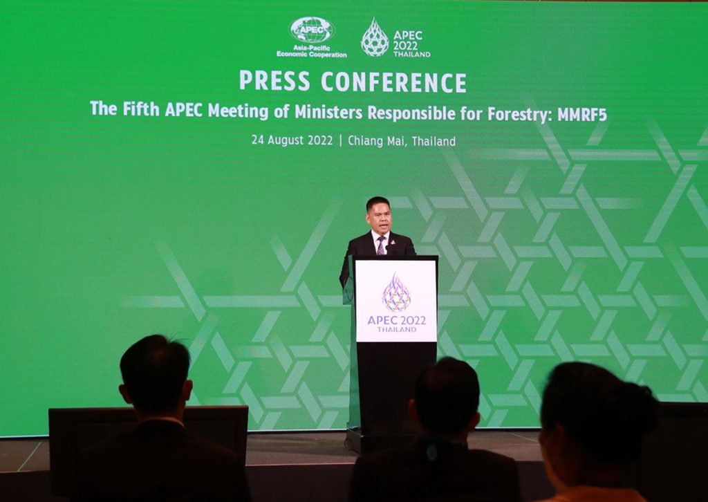 นายวราวุธ ศิลปอาชา รัฐมนตรีว่าการกระทรวงทรัพยากรธรรมชาติและสิ่งแวดล้อม ได้แถลงข่าวภายหลังการประชุม ว่า การประชุม MMRF5 นั้น เป็นการประชุมที่มุ่งสู่เป้าหมายด้านการป่าไม้อย่างยั่งยืน เพื่อสร้างความสัมพันธ์ เชื่อมโยงกัน สู่สมดุล Open Connect Balance ซึ่งประเทศไทยได้นำเสนอให้เขตเศรษฐกิจพิจารณานำหลัก BCG Economy Model ไปสนับสนุนการดำเนินงานภายใต้กรอบการทำงานของเอเปค และยินดีกับความสำเร็จของสมาชิกเอเปคในการร่วมกันดำเนินงานจนสามารถบรรลุตามเป้าหมายการเพิ่มไม้ของภูมิภาค โดยสามารถดำเนินการได้เกินกว่าเป้าหมายที่กำหนดไว้ คือ สามารถเพิ่มป่าไม้ได้ถึง 174.38 ล้านไร่ หรือ 27.9 ล้านเฮกแตร์