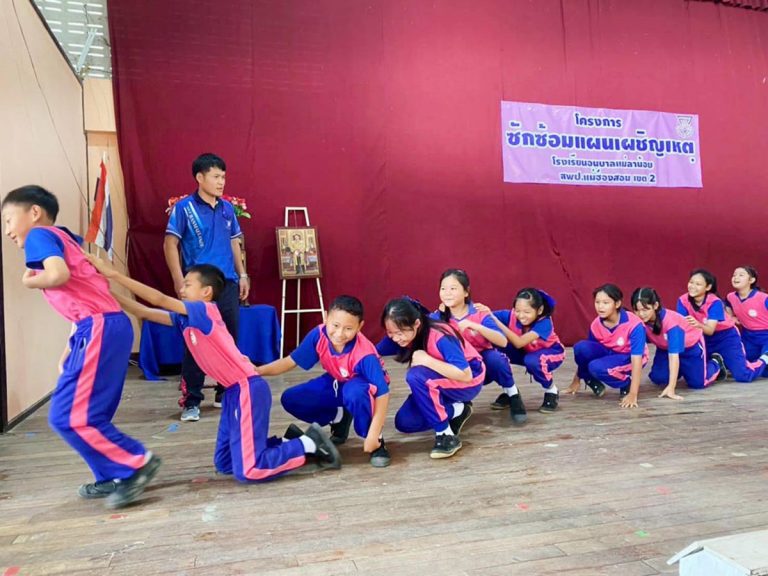 เทศบาลตำบลแม่สะเรียง ซักซ้อมแผนรับมือแผ่นดินไหว เสริมทักษะความรู้การป้องกันตัวเองแก่เด็กนักเรียนโรงเรียนทองสวัสดิ์วิทยาคาร