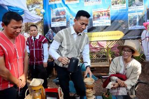 นายอำเภอแม่สะเรียง โชว์ ดริปกาแฟจากหวดไม้ไผ่ “หว่าเนอมู” ผลิตภัณฑ์แปรรูปการเชื่อมโยงวิถีชีวิต ชนเผ่าปกาเญอ