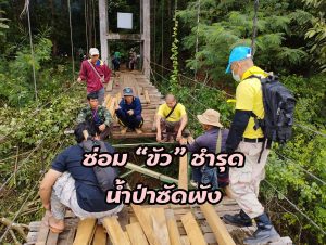 แม่ลาน้อยร่วมแรงร่วมใจซ่อมแซม “ขัว” หลังถูกน้ำป่าพัดสภาพชำรุด