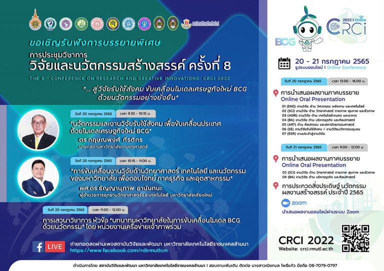 มทร.ล้านนา เจ้าภาพจัดงาน CRCI 2022 “สู่วิจัยรับใช้สังคม ขับเคลื่อนโมเดลเศรษฐกิจใหม่ BCG ด้วยนวัตกรรม อย่างยั่งยืน”
