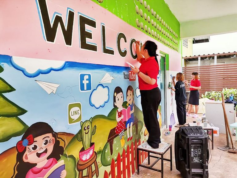 สวยจนน่าทึ่ง สกิลแนวศิลป์ คุณครูโรงเรียนบ้านแม่จ๊าง ใช้เวลาหลังเลิกเรียนวาดผนังห้องสมุดสร้างแรงจูงใจเข้าสู่แหล่งข้อมูลคลังสมองของโรงเรียน