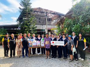 นายกกิ่งกาชาดอำเภอแม่สะเรียง นำภาคีเครือข่ายลงพื้นที่ช่วยเหลือราษฎรประสบเหตุอัคคีภัย