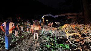 อช.แม่เงา อส.สบเมย เร่งเปิดเส้นทาง หลัง ไฟป่าริมทางเผาโคนไม้ใหญ่ล้มปิดทับเส้นทางหลวง 105 สบเมย -แม่สอด