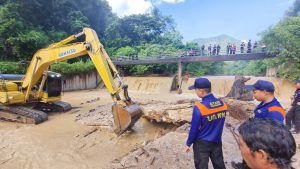 พบกลิ่นเน่าฟุ้ง นายอำเภอสบเมย ประสาน นพค.36 ใช้รถแบ็คโฮ 2 คัน ยกแผ่นคอนกรีตขนาดใหญ่ค้นหาผู้สูญหายน้ำป่าไหลหลากพัด