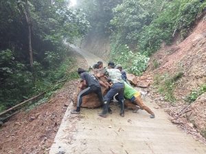 แม่สะเรียง ชาวบ้านแม่สอง ร่วมแรงย้ายหิน ตัดต้นไม้ เปิดทาง วิ่งได้เฉพาะรถจักรยานยนต์