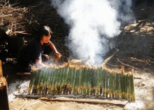 แม่สะเรียงเผาข้าวหลาม เตรียมขึ้นวัดทำบุญตานข้าวใหม่ หรือการถวายข้าวใหม่ เดือนสี่ตามประเพณี