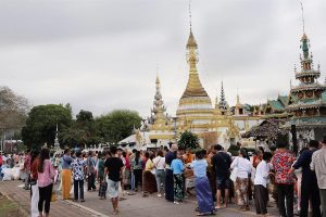 ชาวแม่ฮ่องสอนและนักท่องเที่ยวร่วมทำบุญตักบาตร เนื่องในงานประเพณีสงกรานต์ เพื่อความเป็นสิริมงคล