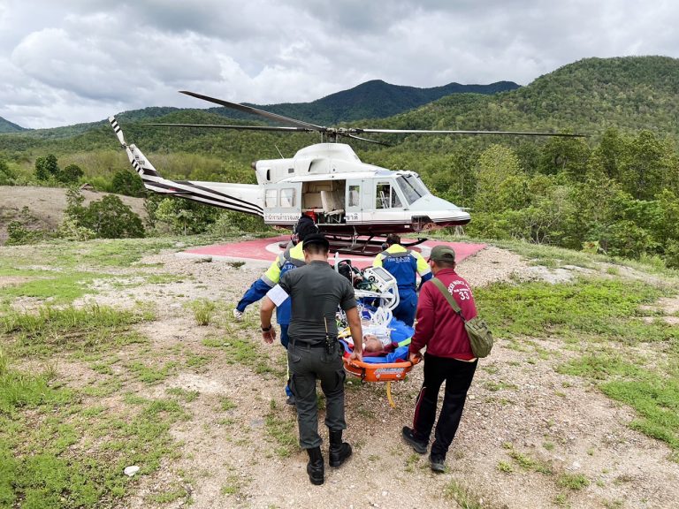 วินาทีชีวิต บินด่วน ฮ.หน่วยบินตำรวจ รับ พ่อเฒ่า วัย 71 ปี ป่วยฉุกเฉินอาการแน่นหน้าอก หายใจเหนื่อย จากแม่สะเรียง ส่งนครพิงค์