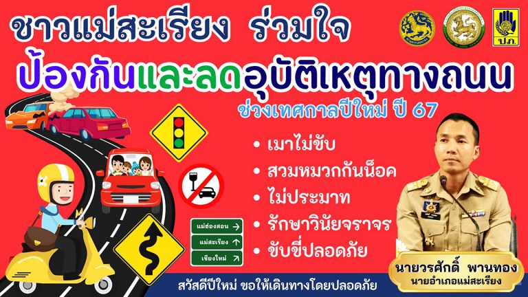 ประชาสัมพันธ์เชิงรุก นายอำเภอแม่สะเรียง รณรงค์ป้องกันลดอุบัติเหตุทางถนน “ขับขี่ปลอดภัย เมืองไทยไร้ อุบัติเหตุ”