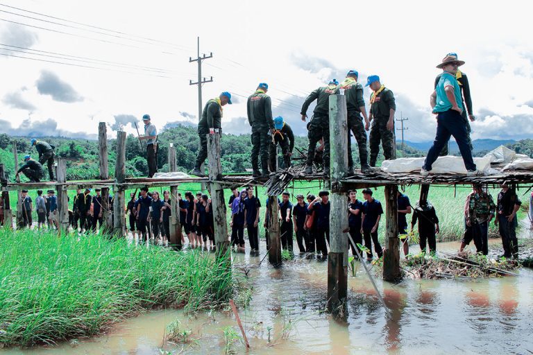 ไทด์-โบ๊ท นำทีมงานร่วมกตัญญูช่วยเด็กนักเรียนชาวบ้านที่ประสบอุทกภัยสบเมย