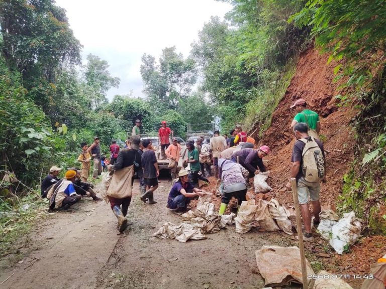 ป้องกันไว้ก่อน อบต.แม่สามแลบ ชาวบ้านขนดินหินปิดร่องลึกเพื่อการสัญจรที่ปลอดภัย เตือนไม่จำเป็นขอให้เลี่ยงเดินทาง