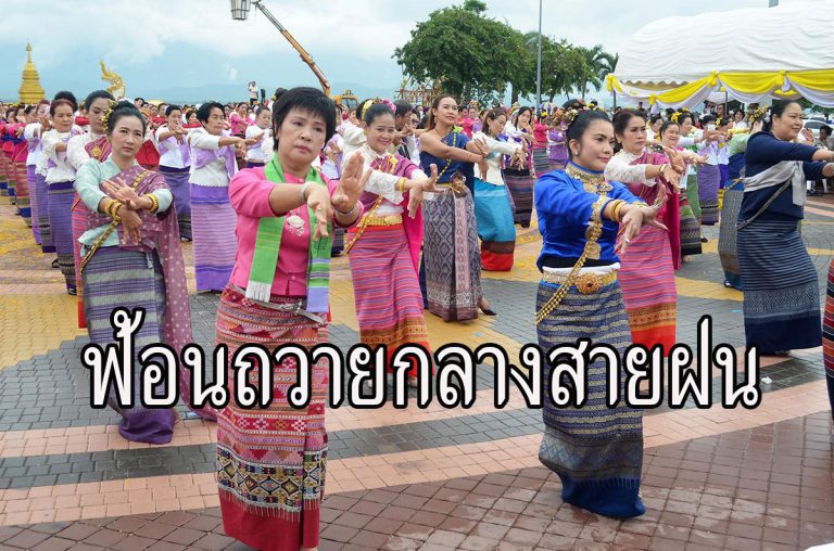 (มีคลิป) พะเยา ช่างฟ้อน 3,000 คน รำถวาย “พ่อขุนงำเมือง” ท่ามกลางสายฝน ในพิธีบวงสรวงถวายหอคำเครื่องประกอบพระเกียรติ ที่สร้างใหม่