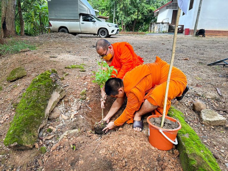 สามเณรวัดจอมทองและประชาชนร่วมปลูกต้นไม้ เนื่องในมงคลสมัยฉลองพระชนมายุ 8 รอบ สมเด็จพระสังฆราช