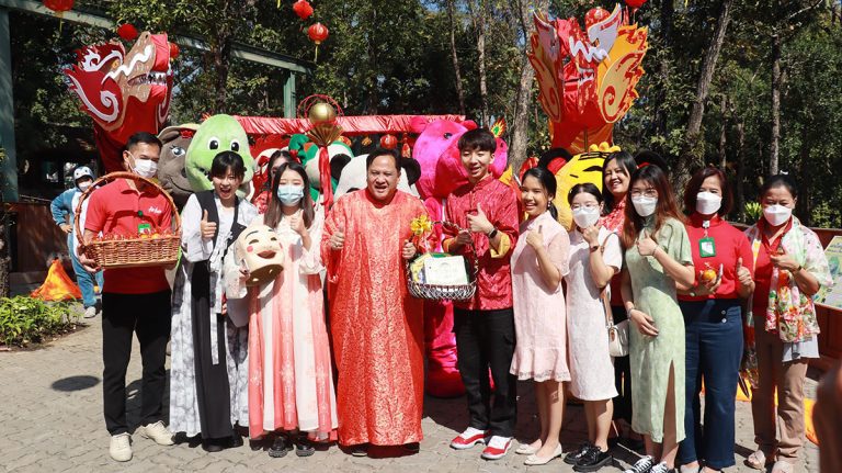 ผอ.สวนสัตว์เชียงใหม่ แต่งตัวเป็นอาแป๊ะยิ้ม นำแห่ขบวนฉลองเทศกาลตรุษจีน แจกส้มมงคลให้นักท่องเที่ยว