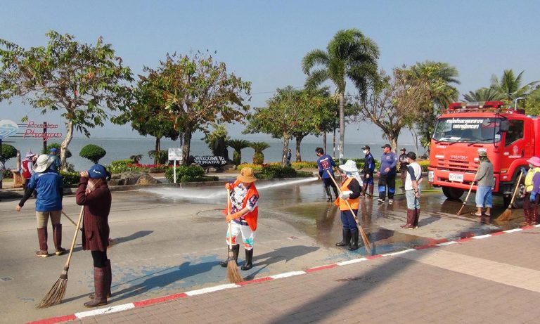 (มีคลิป) เทศบาลเมืองพะเยา ทำความสะอาด “ห้องรับแขก” ล้างถนนชายกว๊าน รับนักท่องเที่ยวปีใหม่ 2566