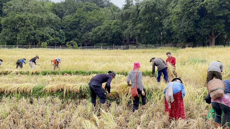 นักรบดำจับเคียวลงแขกเกี่ยวข้าวช่วยประชาชน ลดต้นทุน ฟื้นประเพณี