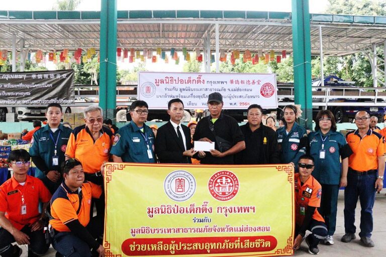 มูลนิธิบรรเทาสาธารณภัยแม่ฮ่องสอน ร่วมกับ มูลนิธิป่อเต็กตึ้ง กรุงเทพฯ มอบผ้าห่มกันหนาว เครื่องอุปโภค บริโภคให้ชาวแม่สะเรียง ถวายพระราชกุศล สมเด็จพระพันปีหลวง