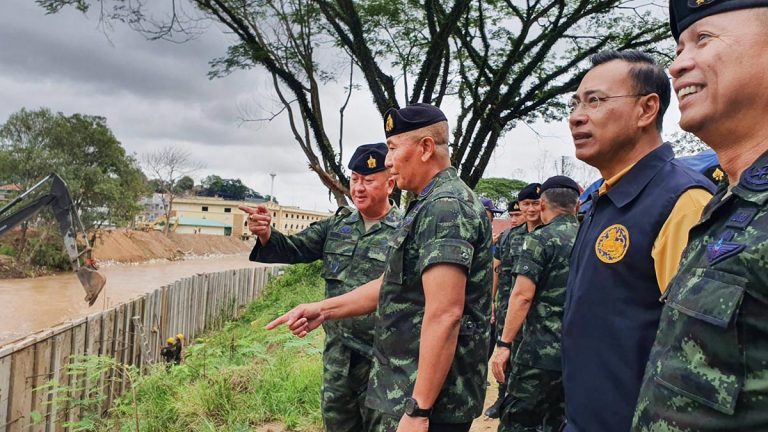 (มีคลิป) เชียงราย ผบ.ทบ.ติดตามการสร้างพนังกั้นน้ำป้องกันน้ำท่วมแม่สาย