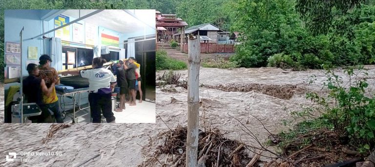 แม่สะเรียง หามผู้ป่วยเดินเท้าเกือบ 5 ชม ส่ง รพ.สต.สล่าเชียงตอง ตี 3 หลัง เสาหินน้ำป่าหลากเส้นทางรถสัญจรไม่ได้