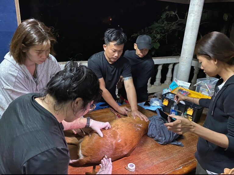 “เก้งน้อย” พลัดหลงเข้าบ้านเรือนราษฏรได้รับบาดเจ็บ สบอ.16 แม่สะเรียง เร่งช่วยเหลือจนปลอดภัย