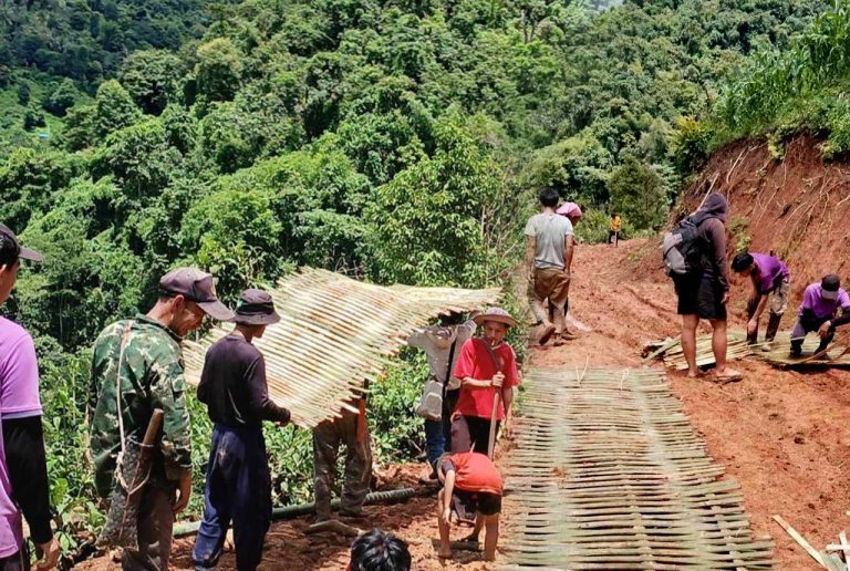 ชาวบ้านสานไม้ไผ่ปูพื้นถนนฝ่าดินโคลน ภูมิปัญญาชาวบ้าน แก้ปัญหาเฉพาะหน้าในห้วงฤดูฝน