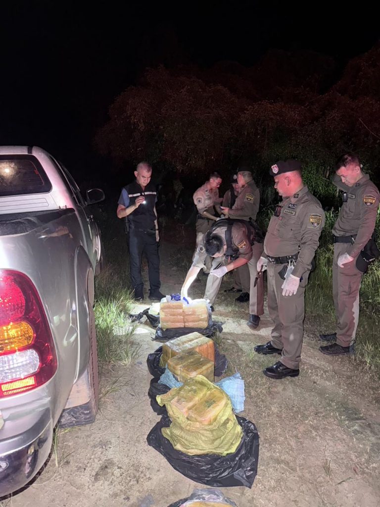 เจ้าหน้าที่จึงได้ย้อนกลับไปยังเส้นทางที่หญิงต้องสงสัยขับขี่มา ได้พบรถยนต์ ต้องสงสัย ยี่ห้อ โตโยต้า สีเทา ทะเบียน ผจ 74xx เชียงใหม่ จอดอยู่บริเวณริมทาง แต่ไม่พบผู้ใดอยู่ที่รถคันดังกล่าว และพบว่าประตูรถด้านซ้าย ข้างผู้โดยสารเปิดทิ้งไว้ และมีร่องรอยการถูกเฉี่ยวชนบริเวณด้านหน้าข้างขวาของรถ ซึ่งช่องทางที่รถมุ่งหน้าไปเป็นทางตัน เจ้าหน้าที่จึงใช้มือสัมผัสไปยังบริเวณกระโปงหน้ารถ พบว่าเครื่องยังมีอุณหภูมิที่ร้อน แต่ไม่สามารถขับขี่ไปได้ เนื่องจากล้อรถคันดังกล่าว ตกล่องข้างทาง เมื่อตรวจสอบภายในรถยนต์คันดังกล่าว พบถุงดำขนาดใหญ่ จำนวน 6 ถุง เมื่อตรวจสอบภายในถุงดำดังกล่าว พบว่าภายในถุง มียาบ้าบรรจุอยู่ในถุงพลาสติกแบบดึงเปิดรูดปิด ถุงละประมาณ 200 เม็ด ห่อด้วยกระดาษสา จำนวนประมาณ 5 มัดเล็ก และ ห่อหุ้มด้วยเทียนไขสีเหลืองอีกชั้นหนึ่ง ประมาณ 10 มัดใหญ่ และ ห่อด้วยกระสอบฟางอีกชั้นหนึ่ง และ หุ้มด้วยถุงดำอีกชั้นหนึ่ง รวมยาบ้าทั้งสิ้นจำนวนประมาณ 600,000 เม็ด ทั้งหมดวางไว้บริเวณด้านหลังของเบาะรถยนต์คันดังกล่าว