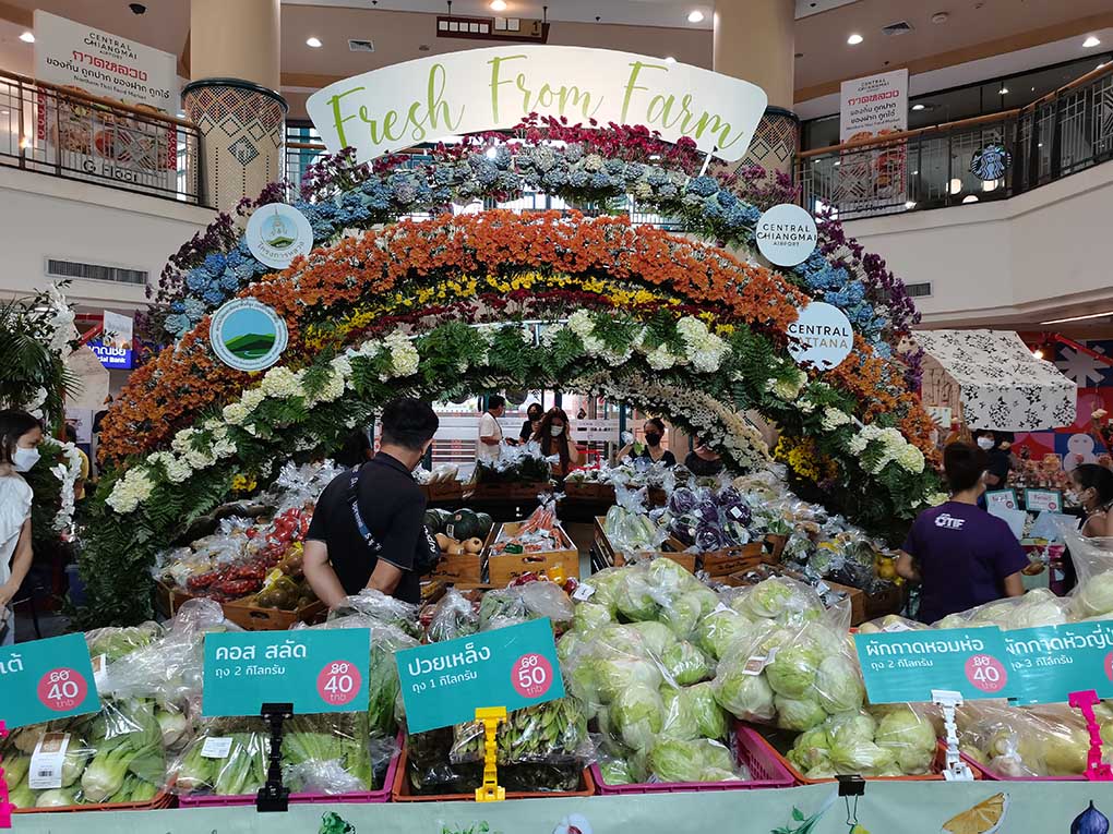ศูนย์การค้าเซ็นทรัล เชียงใหม่ แอร์พอร์ต ร่วมกับ มูลนิธิโครงการหลวง จัดงาน “Fresh From Farm 2022 : สายรุ้งแห่งรักจากหุบเขา” ยกผลผลิตจากโครงการหลวงมากกว่า 200 รายการ เพื่อส่งเสริมสินค้าของโครงการหลวง   เพิ่มช่องทางการจำหน่ายสินค้าจากเกษตรกรชาวเขาสู่ลูกค้าโดยตรงมารวมไว้ที่นี่