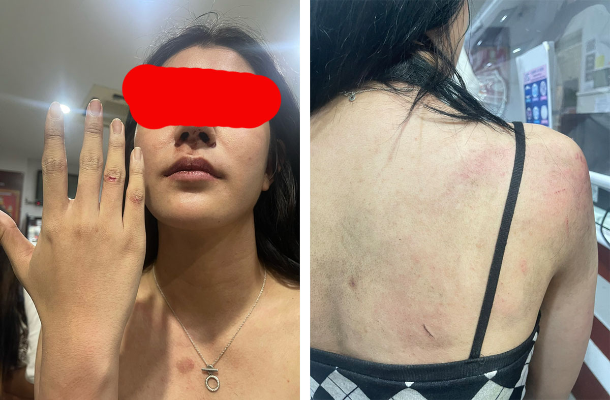 ต่อมาพ่อของแฟนหนุ่มได้ขับรถเก๋งสีดำมาพร้อมกับแม่ มารอที่หน้าโรงแรมที่เกิดเหตุตนจึงได้ซ้อนท้ายรถจักรยานยนต์แฟนไปหาพ่อของแฟนพอไปเจอหน้าพ่อแฟนตนเองได้บอกว่าพ่อค่ะ ลูกพ่อทำลายข้าวของ ของหนู หนูขอไกล่เกลี่ยได้ไหมคะ ถ้าไม่ได้ ไปเคลียที่โรงพักก็ได้ค่ะ หลังจากนั้นพ่อของแฟนได้มาทำร้ายหนูตามในคลิป และมีการข่มขู่ฆ่า ทำให้ตนเองต้องมาเข้ามาแจ้งความ เพราะเป็นห่วงความปลอดภัยเพราะตำรวจเป็นผู้รักษากฎหมายแต่กลับมาทำร้ายประชาชนทั้งๆที่พ่อเป็นผู้ใหญ่แท้แต่กลับมาทำร้ายตนเองซ้ำสองอีกทำให้ตนได้รับบาดเจ็บอีก เบื้องต้นตนเองได้รับบาดเจ็บจมูกเบี้ยวมี แผล ตามร่างกาย และนิ้วมือทำให้ได้รับกระทบในการรับงานเดินแบบด้วยจึงต้องมาออกมาเรียกร้องขอความเป็นธรรมและยืนยันจะดำเนินคดีให้ถึงที่สุด