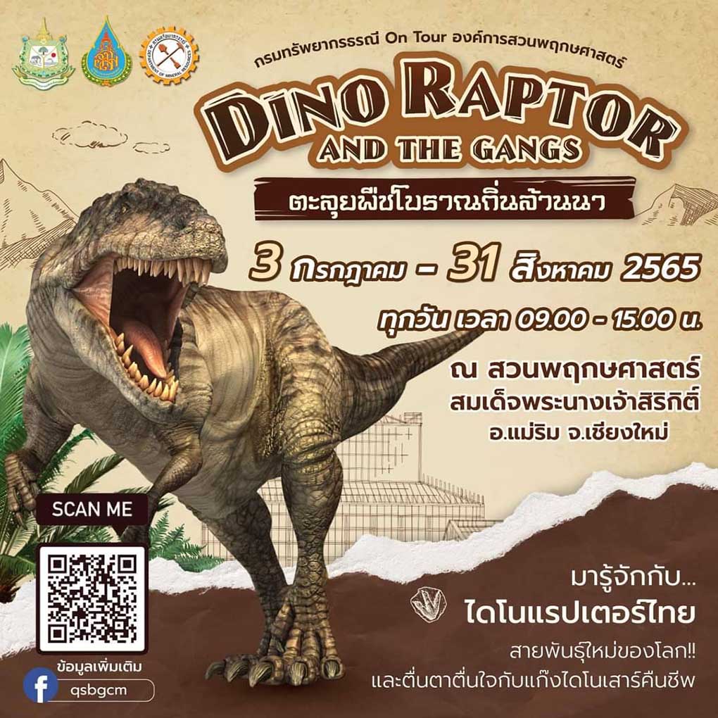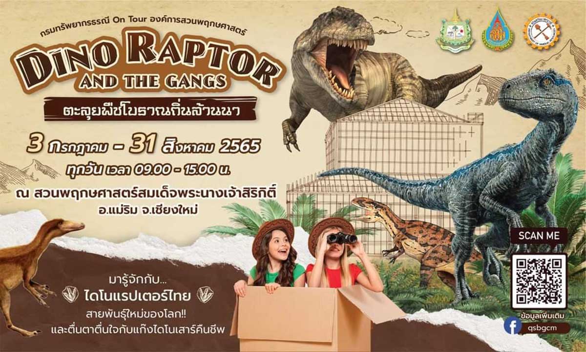ขอเชิญร่วมย้อนเวลาสู่ยุคดึกดำบรรพ์  ในงาน ไดโนแรปเตอร์ แอนด์ เดอะแก๊งค์ ตะลุยพืชโบราณถิ่นล้านนา ระหว่างวันที่ 3 กรกฏาคม ถึง 31 สิงหาคม 2565 ที่ สวนพฤกษศาสตร์สมเด็จพระนางเจ้าสิริกิติ์ อำเภอแม่ริม จังหวัดเชียงใหม่