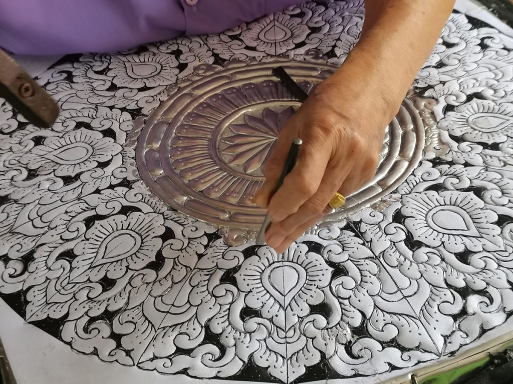 “งานดุนโลหะ” หรือ ภาษาถิ่นล้านนาจะเรียก ดุนลาย ว่า ต้องลาย หรือ ต้องครัว สร้างสรรค์โดย ครูดิเรก สิทธิการ ครูศิลป์ของแผ่นดิน ปี 2554 และนายพิชิต นะงอลา ทายาทช่างศิลปหัตถกรรม ปี 2562 ทั้งสองท่านยังคงเอกลักษณ์งานดุนโลหะตามขนบและลวดลายแบบดั้งเดิม และมีฝีมือที่ละเอียดลออ รวมถึงยังได้พัฒนารูปแบบ ลวดลาย วัสดุในการทำงานดุนโลหะสลักเงินให้มีความทันสมัย เหมาะกับยุคและความต้องการของตลาดมากขึ้น มีการปรับเปลี่ยนวัสดุอุปกรณ์ในการผลิตให้หาง่ายและทันสมัยขึ้น อย่างเช่น ทองแดง อลูมิเนียม ในการสร้างสรรค์ชิ้นงาน เพื่อเพิ่มสีสันเพิ่มมิติให้กับงานนั้น ๆ มากขึ้น รวมถึงลวดลายได้มีการนำลวดลายไทยและล้านนาแบบดั้งเดิมมาผสมผสานกับศิลปะร่วมสมัย ออกจำหน่าย ขยายตลาดให้มากขึ้น สำหรับผลงานของนายพิชิต นะงอลา ทายาทช่างศิลปหัตถกรรม ปี 2562 อีกหนึ่งผู้สืบทอดภูมิปัญญางานดุนโลหะจากครูดิเรก นำมาต่อยอดเป็นผลิตภัณฑ์ต่าง ๆ ที่เข้าถึงได้ง่ายขึ้น มีเอกลักษณ์ที่ความชัดเจนของลวดลาย ละเอียด อ่อนช้อย งดงามรอบด้านในรูปแบบลอยตัว เช่น ผลงานที่ชื่อว่า “ไตรภูมิ” ที่นำโลหะ ทั้ง 3 ชนิด (ทองเหลือง ทองแดง และอะลูมิเนียม) มารวมไว้ในชิ้นงานเดียว จนได้มีโอกาสนำผลงานดุนโลหะ “ปลาอานนท์” ไปอวดโฉมปรากฏสายตาชาวโลกให้เป็นที่ประจักษ์ในความงดงามและคุณค่าจากภูมิปัญญาที่เป็นเอกลักษณ์ ต่อยอดความคิดสร้างสรรค์ ผสมผสานกับจินตนาการอันกว้างไกลด้วยฝีมือคนไทย ที่งาน Revelations 2019 ณ Grand Palais กรุงปารีส ประเทศฝรั่งเศส ที่ผ่านมาอีกด้วย