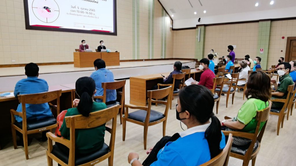 เมื่อวันที่ 5 ต.ค.65 เวลา 13.30 น. ที่ห้องประชุมสภาองค์การบริหารส่วนจังหวัดเชียงใหม่ นายนาวิน สินธุสะอาด รองนายกองค์การบริหารส่วนจังหวัดเชียงใหม่ พร้อมด้วย นายแพทย์เพทาย เตโชฬาร รองนายกองค์การบริหารส่วนจังหวัดเชียงใหม่ เป็นประธานการประชุมชี้แจงแนวทางป้องกันและควบคุมการแพร่ระบาดของโรคไข้เลือดออกพื้นที่จังหวัดเชียงใหม่ โดยมี นายเสรี เพ็งสาท ผู้อำนวยการกองสาธารณสุข และ พันจ่าเอกถวัลย์ พวงบุบผา หัวหน้าฝ่ายบริหารงานสาธารณสุขบรรยายการดำเนินการป้องกันและควบคุมการระบาดของไข้เลือดออกในพื้นที่จังหวัดเชียงใหม่ ตามโครงการป้องกันและควบคุมการแพร่ระบาดของโรคติดต่อองค์การบริหารส่วนจังหวัดเชียงใหม่ เพื่อประชุมชี้แจงแนวทางป้องกันและการควบคุมการแพร่ระบาดของโรคไข้เลือดออกและสนับสนุนการดำเนินการควบคุมโรคไข้เลือดออกให้แก่องค์กรปกครองส่วนท้องถิ่นและหน่วยงานที่เกี่ยวข้องในจังหวัดเชียงใหม่