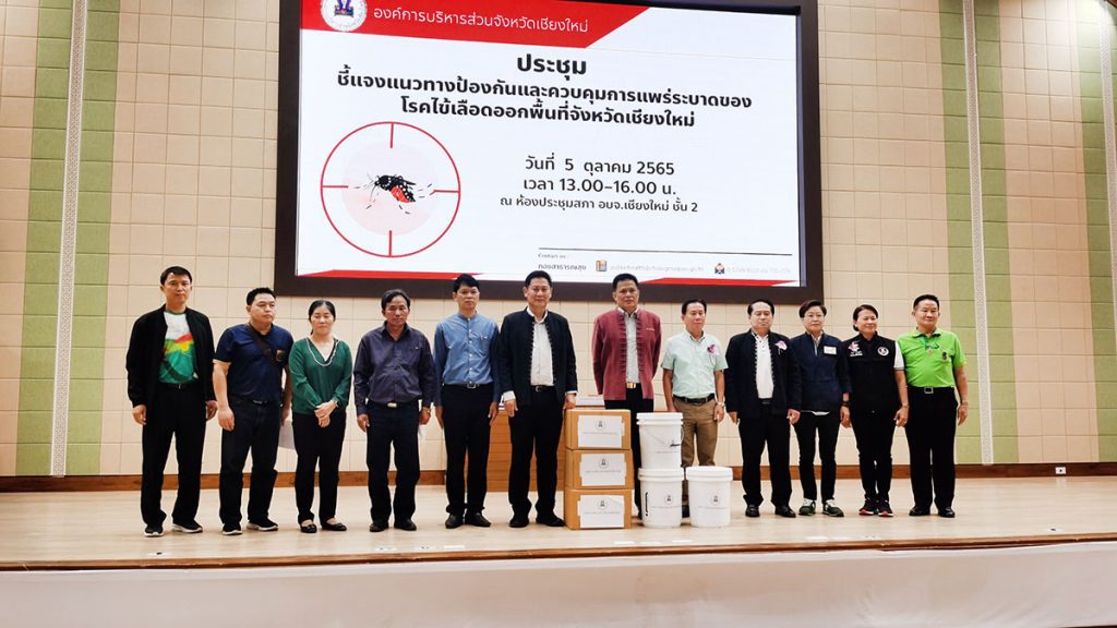 อบจ.เชียงใหม่ แจกอุปกรณ์ป้องกันยุงลายให้ 20 อำเภอ เร่งป้องกันและประชาสัมพันธ์ให้ช่วยกันปราบยุงลายหลังน้ำลดลง หวั่นจะมีแหล่งเพาะพันธุ์ยุงจำนวนมาก และเชียงใหม่ติดอันดับ 3 การแพร่ระบาดของประเทศ