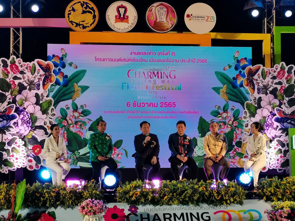 เย็นวันนี้ (6 ธ.ค. 65) นายนิรัตน์ พงษ์สิทธิถาวร ผู้ว่าราชการจังหวัดเชียงใหม่ ร่วมการแถลงข่าว ครั้งที่ 2 การจัดงานมนต์เสน่ห์เชียงใหม่ เมืองดอกไม้งาม ประจำปี 2566 (CHARMING Chiang Mai Flower Festival 2023) ภายใต้แนวคิด “Miracle Flora” แสง สี ศิลป์ มนต์เสน่ห์ดอกไม้งาม ระหว่างวันที่ 16 ธันวาคม 2565 – 2 มกราคม 2566 เพื่อให้นักท่องเที่ยวได้สัมผัสภาพลักษณ์ที่ดีงามในวิถีชีวิตและวัฒนธรรมล้านนา รวมถึงกระตุ้นเศรษฐกิจและการท่องเที่ยวของจังหวัดเชียงใหม่ให้พัฒนาและเติบโตขึ้นอย่างต่อเนื่อง อีกทั้งยังมีกิจกรรมส่งเสริมการท่องเที่ยวที่หลากหลายเหมาะสมกับแต่ละเทศกาลและสร้างความประทับใจให้แก่นักท่องเที่ยว ซึ่งเป็นการสร้างความเชื่อมโยงและส่งเสริมการท่องเที่ยวระหว่างภาครัฐ ภาคเอกชน สังคม ประชาชน และชุมชนด้านการท่องเที่ยวของจังหวัดเชียงใหม่