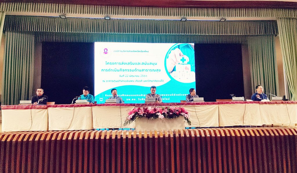 นอกจากนี้ อบจ.เชียงใหม่ ยังจะดำเนินการพัฒนาคุณภาพงานด้านสาธารณสุข ของจังหวัดเชียงใหม่ โดยการพัฒนา – ด้านโครงสร้างพื้นฐานให้ รพ.สต. ในสังกัด อบจ.เชียงใหม่ เช่น อาคาร สถานที่ ปรับปรุงทางเข้า – ออก – ด้านบุคลากร โดยเพิ่มจำนวนเจ้าหน้าที่ให้เต็มตามกรอบอัตรากำลัง สรรหาแพทย์ ทันตแพทย์ เภสัชกร นักกายภาพบำบัด เพียงพอต่อการรับบริการของประชาชน – ด้านวัสดุ ครุภัณฑ์ จัดหาวัสดุ ครุภัณฑ์ทั่วไป และครุภัณฑ์ด้านสาธารณสุข เช่น ยูนิตทำฟัน หุ่นฝึกช่วยกู้ชีพ รถพยาบาลสำหรับส่งต่อผู้ป่วย – สนับสนุนงบประมาณ การซ่อมแซม ปรับปรุง เปลี่ยนป้ายต่าง ๆ ใน รพ.สต. ผลักดันการจัดตั้งหน่วยบริการประจำ เพื่อบริหารจัดการงบประมาณการสร้า เสริมสุขภาพ ป้องกันโรค (PP) งบผู้ป่วยนอก (OP) เพื่อนำมาจัดหาแพทย์ บริการ ที่จำเป็น และเกิดประโยชน์กับประชาชนในพื้นที่ โครงการส่งเสริมและสนับสนุนการดำเนินกิจกรรมด้านสาธารณสุข : กิจกรรมอบรม แกนนำสุขภาพประชาชนแบบมีส่วนร่วมของ รพ.สต. ในสังกัด อบจ.เชียงใหม่ในครั้งนี้ จัดขึ้น โดยมีวัตถุประสงค์เพื่อให้ประชาชนในเขตพื้นที่ รพ.สต. ในสังกัดองค์การบริหารส่วนจังหวัด เชียงใหม่ มีความรู้ ความเข้าใจเกี่ยวกับการถ่ายโอนภารกิจโรงพยาบาลส่งเสริมสุขภาพตำบล (รพ.สต.) และการจัดตั้งหน่วยบริการประจำ ได้ทราบสิทธิขั้นพื้นฐานในการรักษาพยาบาล ในหน่วยบริการปฐมภูมิ รพ.สต. ในสังกัด อบจ.เชียงใหม่ โดยในช่วงเช้ามีการอบรมให้ความรู้ เกี่ยวกับโรคติดต่อที่นำโดยแมลง ที่มียุงเป็นพาหะ การจัดบูธนิทรรศการแสดงผลการดำเนินงานของ รพ.สต. ในสังกัด อบจ.เชียงใหม่ หลังการถ่ายโอน จำนวน 21 บูธ